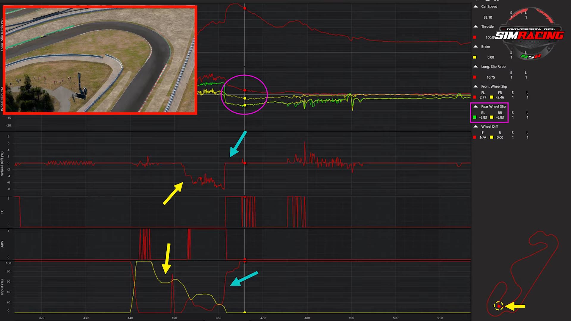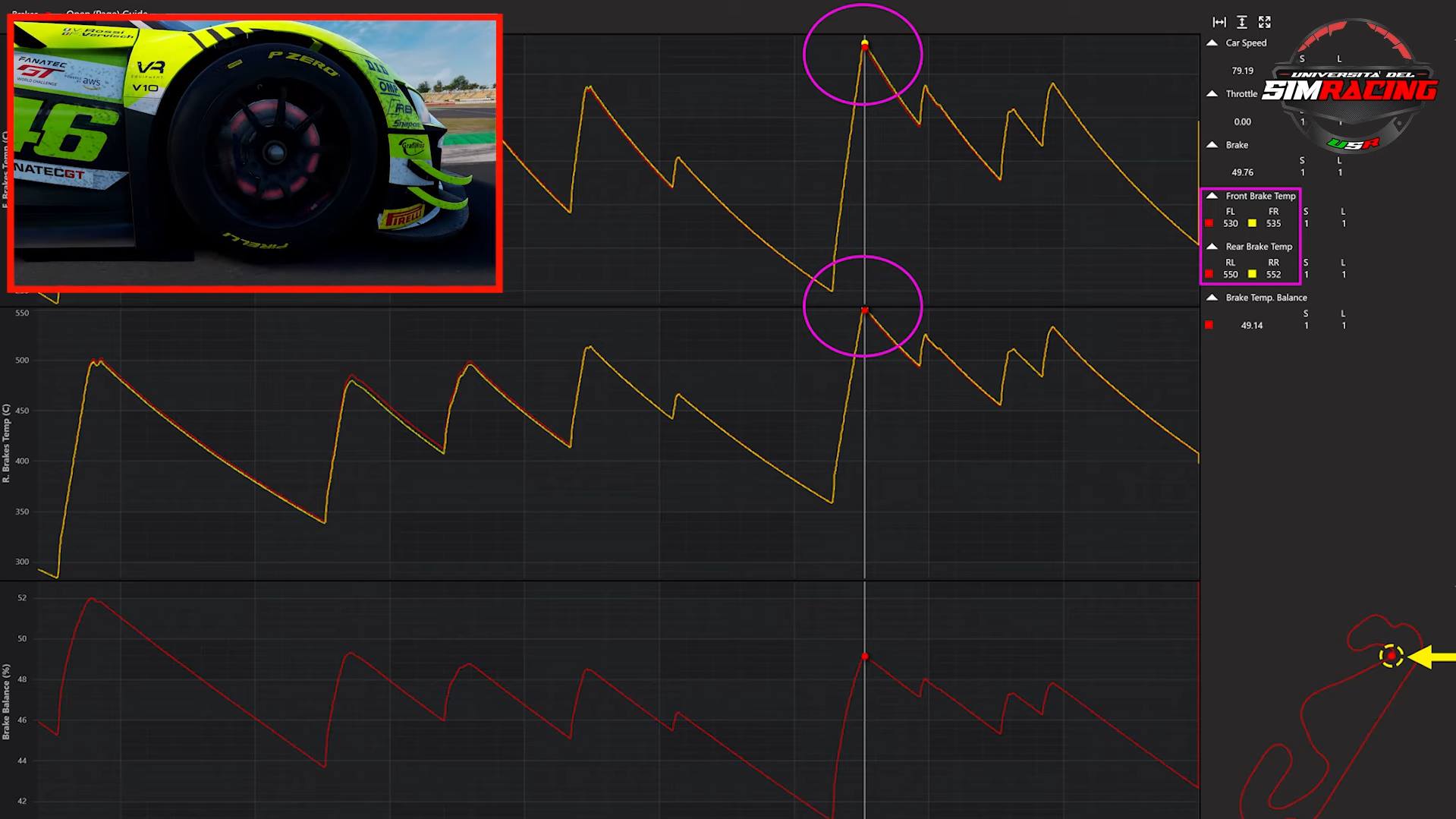 Per chi non la conoscesse, si tratta di un software che permette di analizzare a fondo ogni singolo elemento della guida in pista: accelerazioni, frenate, disconnessioni, apertura o chiusura del volante, lavoro delle sospensioni, se abbiamo o non abbiamo sotto/sovrasterzo ecc.