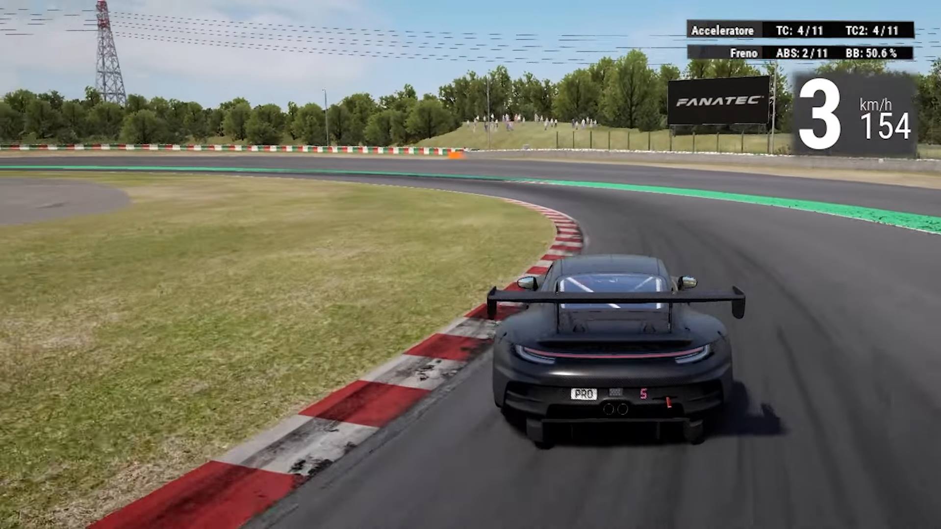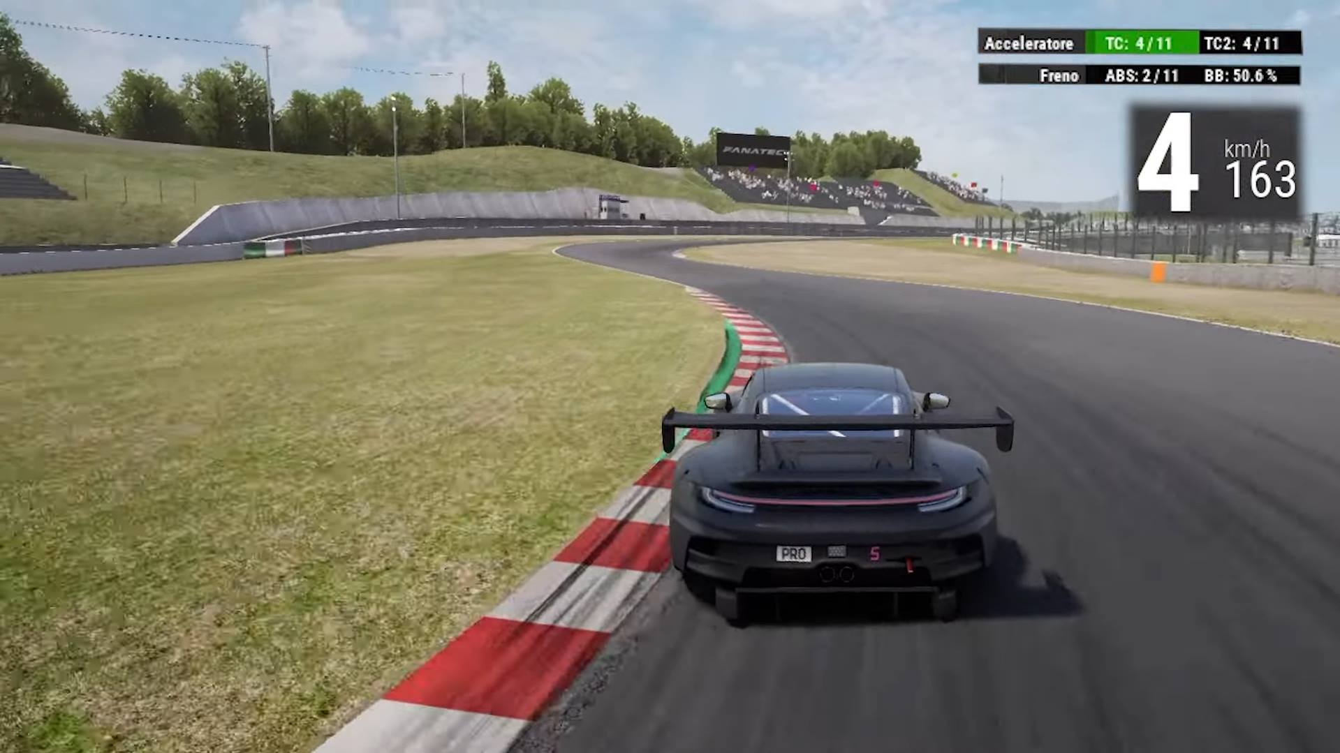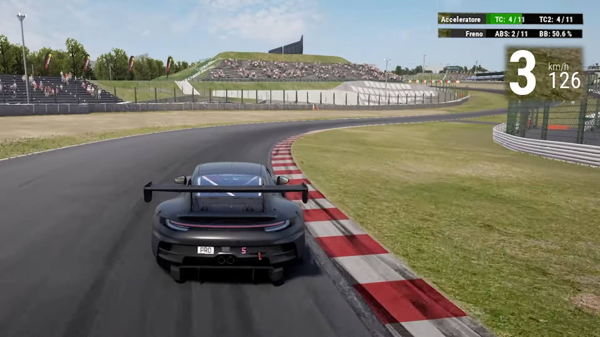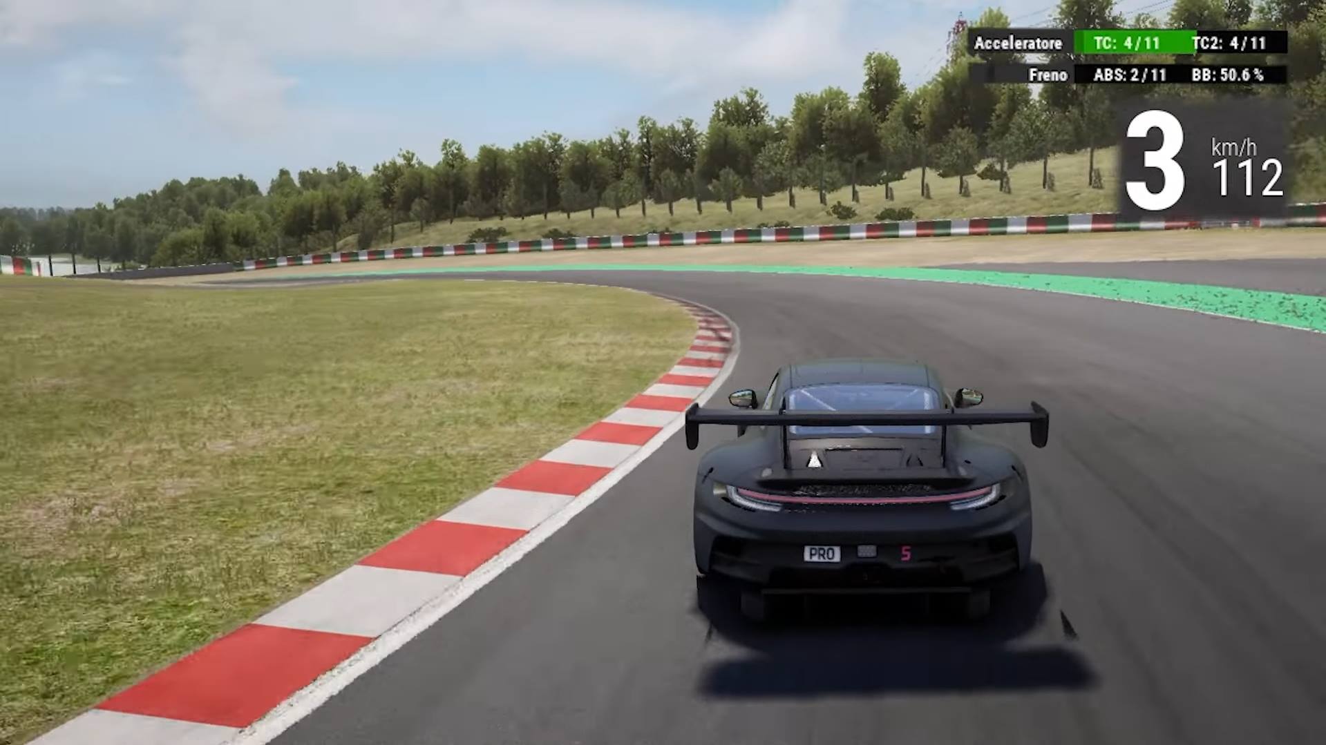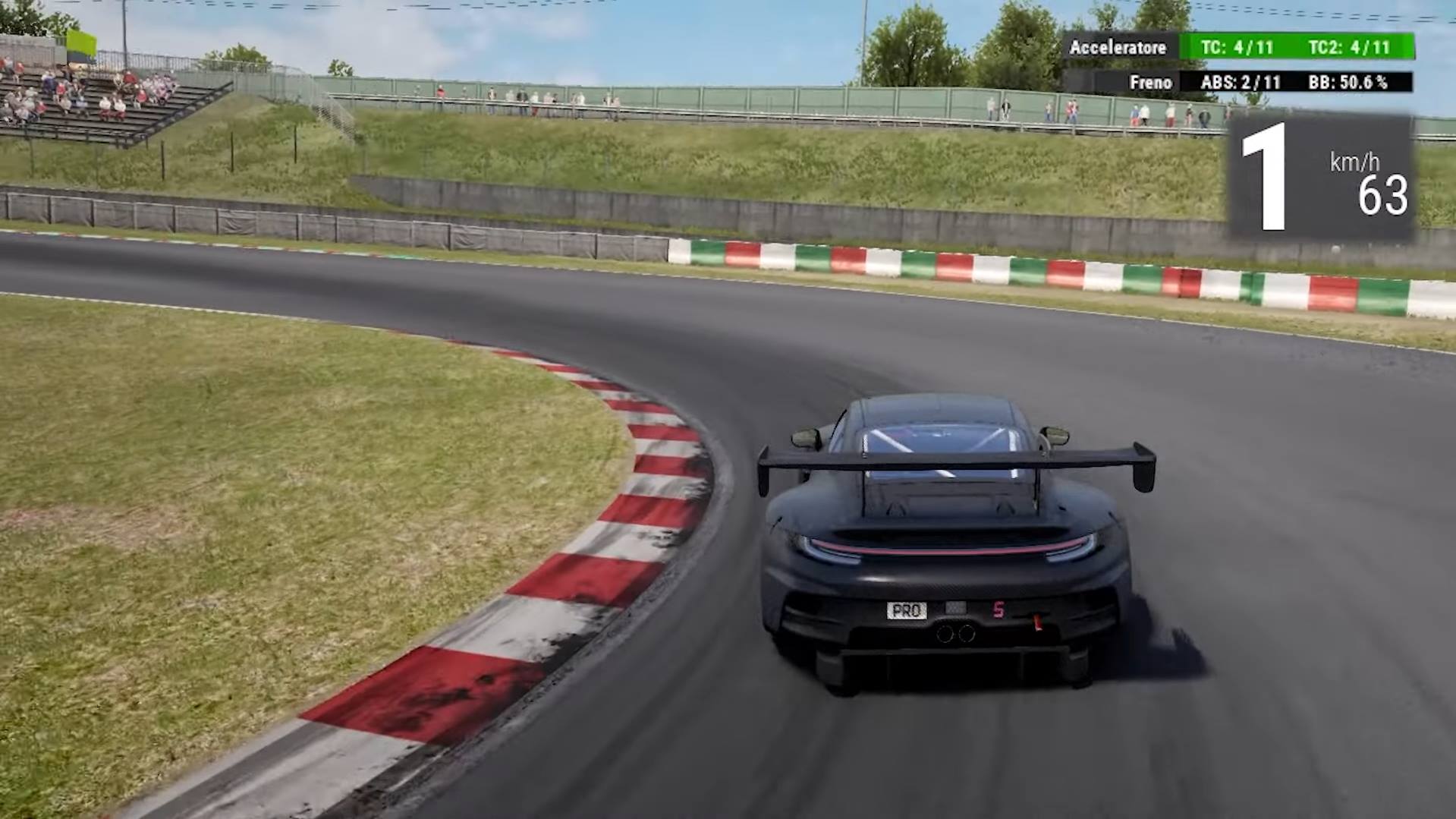 Lavoriamo sul brake balance più sull'anteriore per aiutare in rotazione e sui valori veloci degli ammortizzatori per un passaggio indolore sui cordoli.