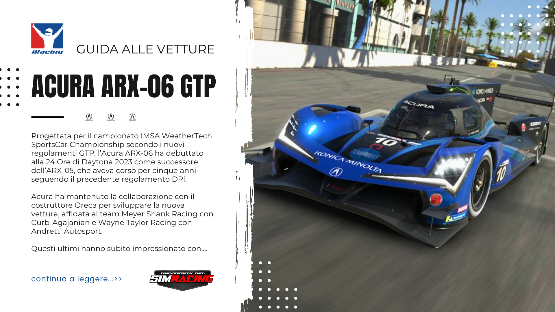 Acura ARX-06 GTP su iRacing: La Guida per Iniziare a cura di Università del SimRacing.