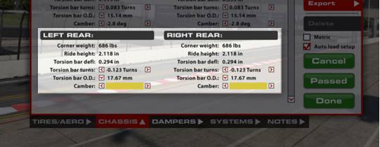 Quando la vettura rientra ai box dopo uno stint in pista, la pressione degli pneumatici viene registrata come Hot Pressure (pressione a caldo).