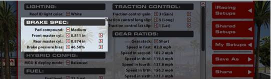 È consigliabile configurare i controlli per regolare il Brake Bias (ripartizione della frenata) e il sistema di Traction Control.