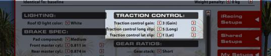 Il Traction Control Gain regola il livello di intervento del sistema di controllo di trazione quando viene rilevato uno slittamento delle ruote: