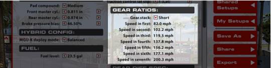 Utilizzare il limitatore in un'altra marcia non influirà sul limite di velocità in pit lane, ma cambierà il numero di LED accesi quando la vettura si trova alla velocità limite.