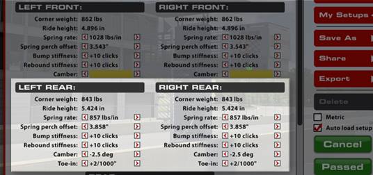 Nella cartella Setup di iRacing troverai diversi setup predefiniti tra cui scegliere:
