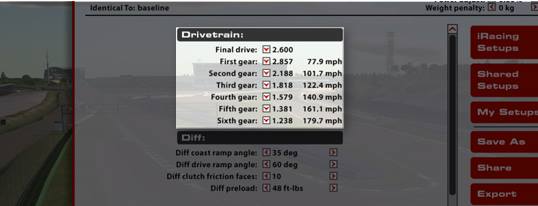 Una volta selezionato un rapporto e premuto il pulsante “Apply”, la velocità massima prevista per quella marcia viene aggiornata accanto all’opzione di rapporto scelta.