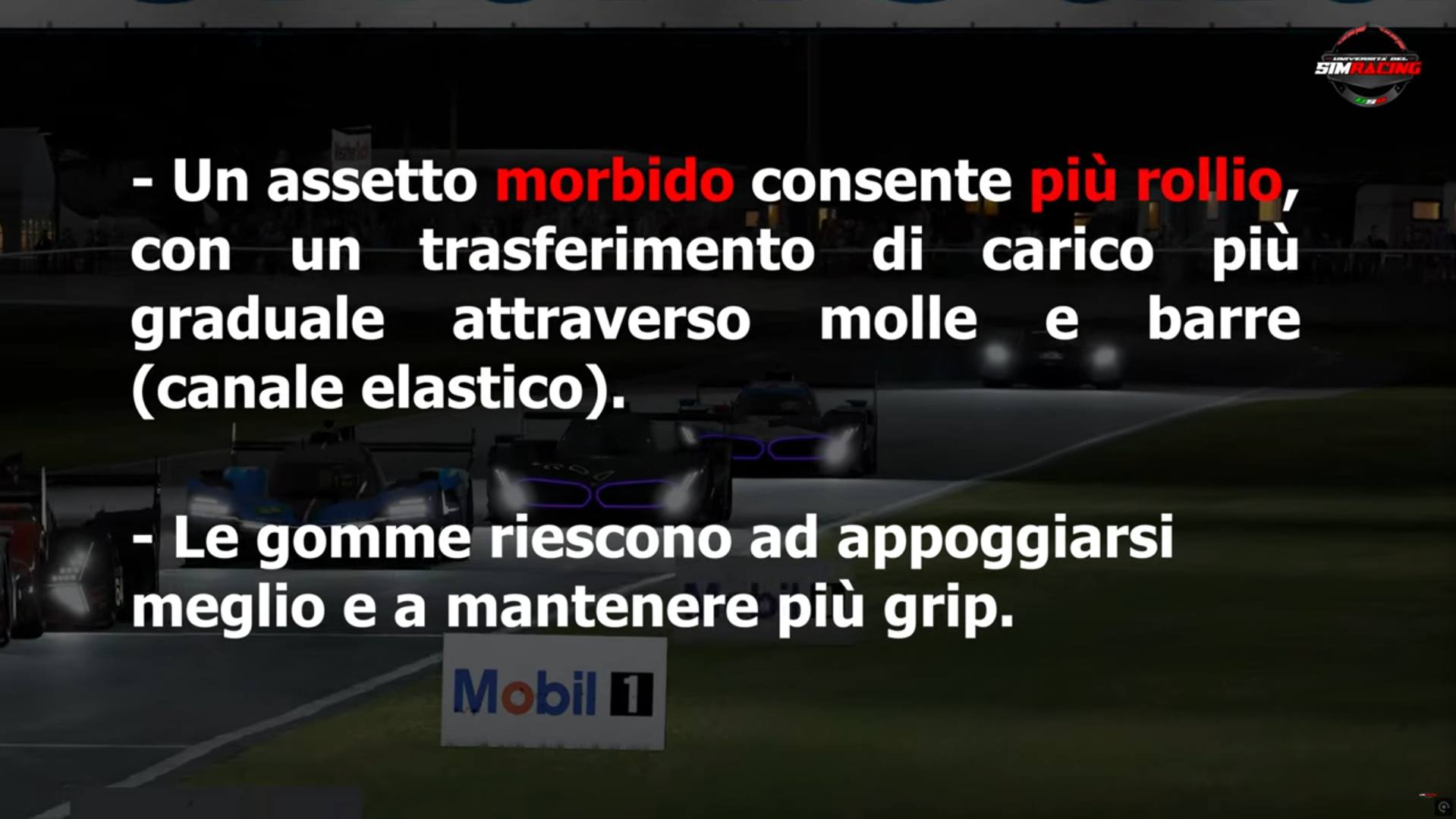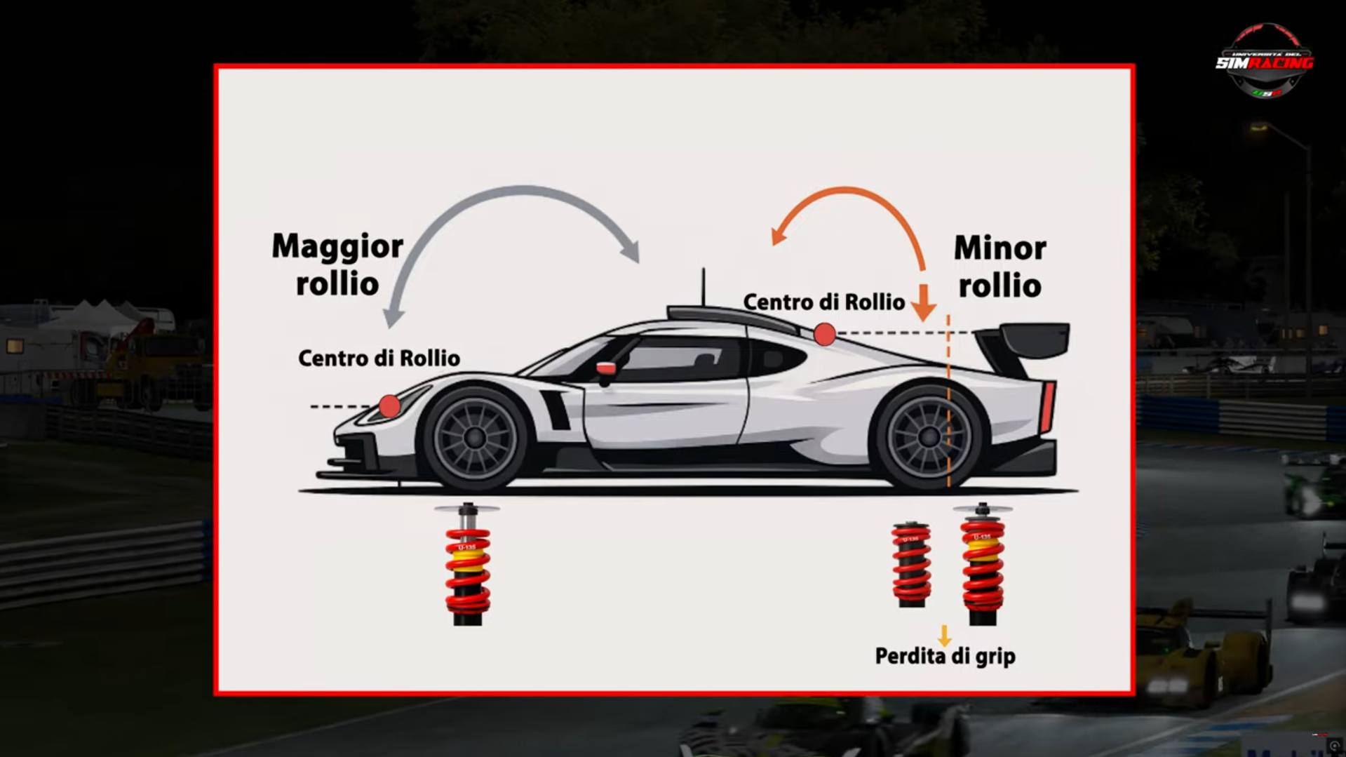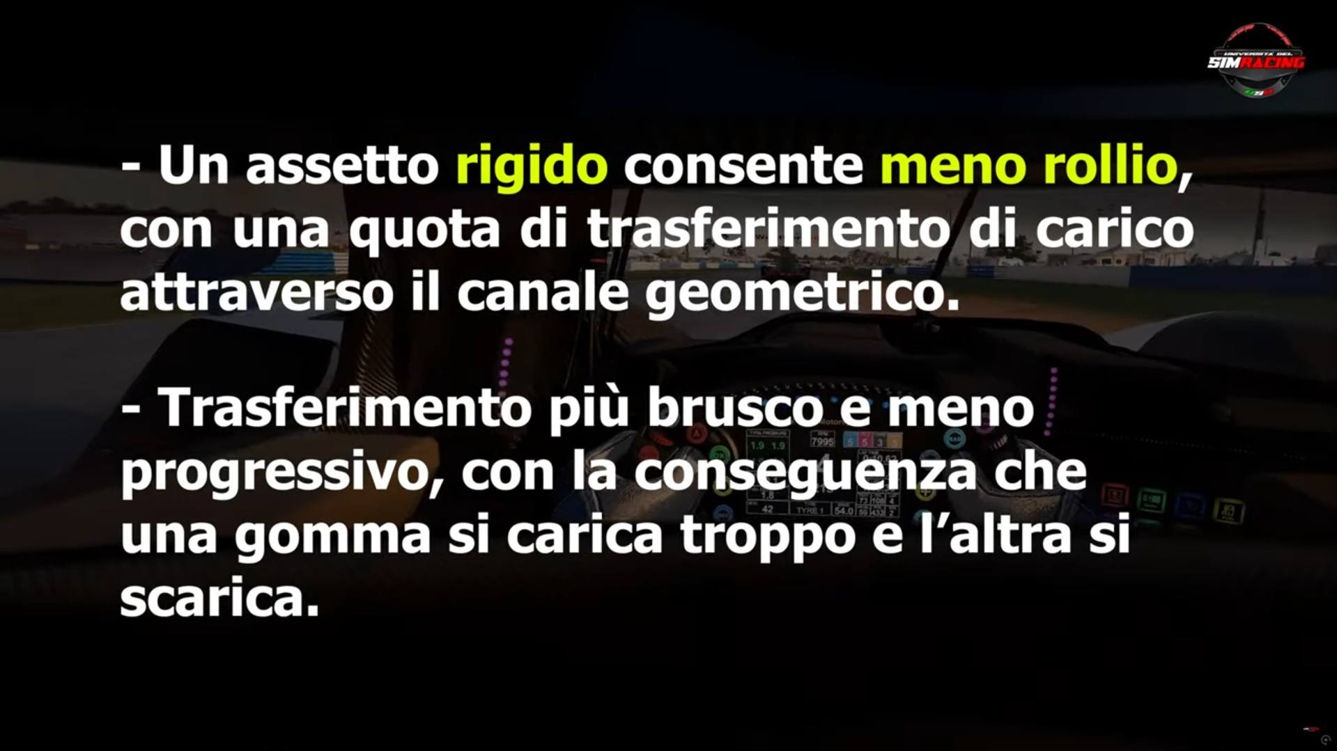 In generale, un assetto più morbido consente alla vettura di rollare di più, ma permette anche un trasferimento di carico più graduale attraverso molle e barre (utilizzando quindi il canale elastico).