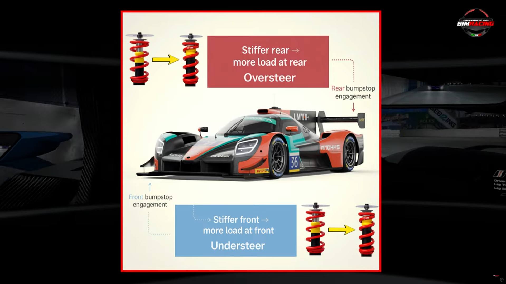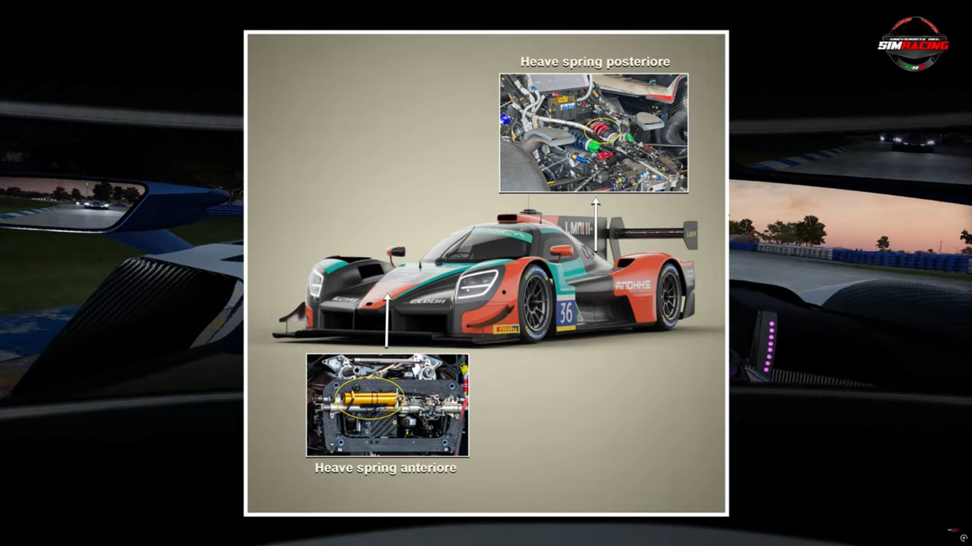 Nel caso delle LMDh reali, è presente proprio questo terzo elemento sia all’anteriore che al posteriore, con bump stop tarati in modo da sostenere il carico aerodinamico a velocità elevata.