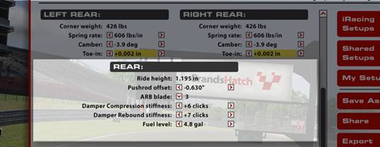 Come per l'asse anteriore, molle più rigide offrono una variazione minore nell'altezza da terra tra situazioni di carico alto e basso, migliorando le prestazioni aerodinamiche grazie a un maggiore controllo della piattaforma.