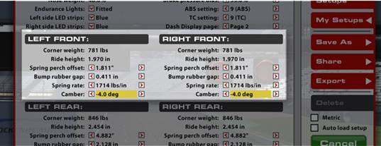 Questo deve essere tenuto in considerazione quando si effettuano regolazioni al setup, come ride heights statici, rigidezza delle molle e angolo dell’alettone posteriore.