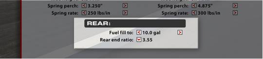 L’impostazione Fuel Fill To modifica la quantità di carburante nel serbatoio quando l’auto lascia i box.