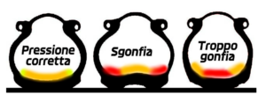 Lo pneumatico sgonfio (under inflated), ha un profilo in cui le parti interne ed esterne sono più a contatto con il suolo rispetto a uno pneumatico corretto o troppo gonfio (over inflated).