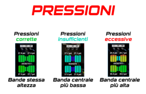 La corretta finestra operativa delle pressioni (ovvero l’intervallo entro il quale le pressioni stesse devono trovarsi per considerarsi ottimali) è piuttosto ampia: infatti dopo l’ultimo aggiornamento il range operativo ottimale va dai 26 psi ai 27psi con lo sweet spot a 26.64.