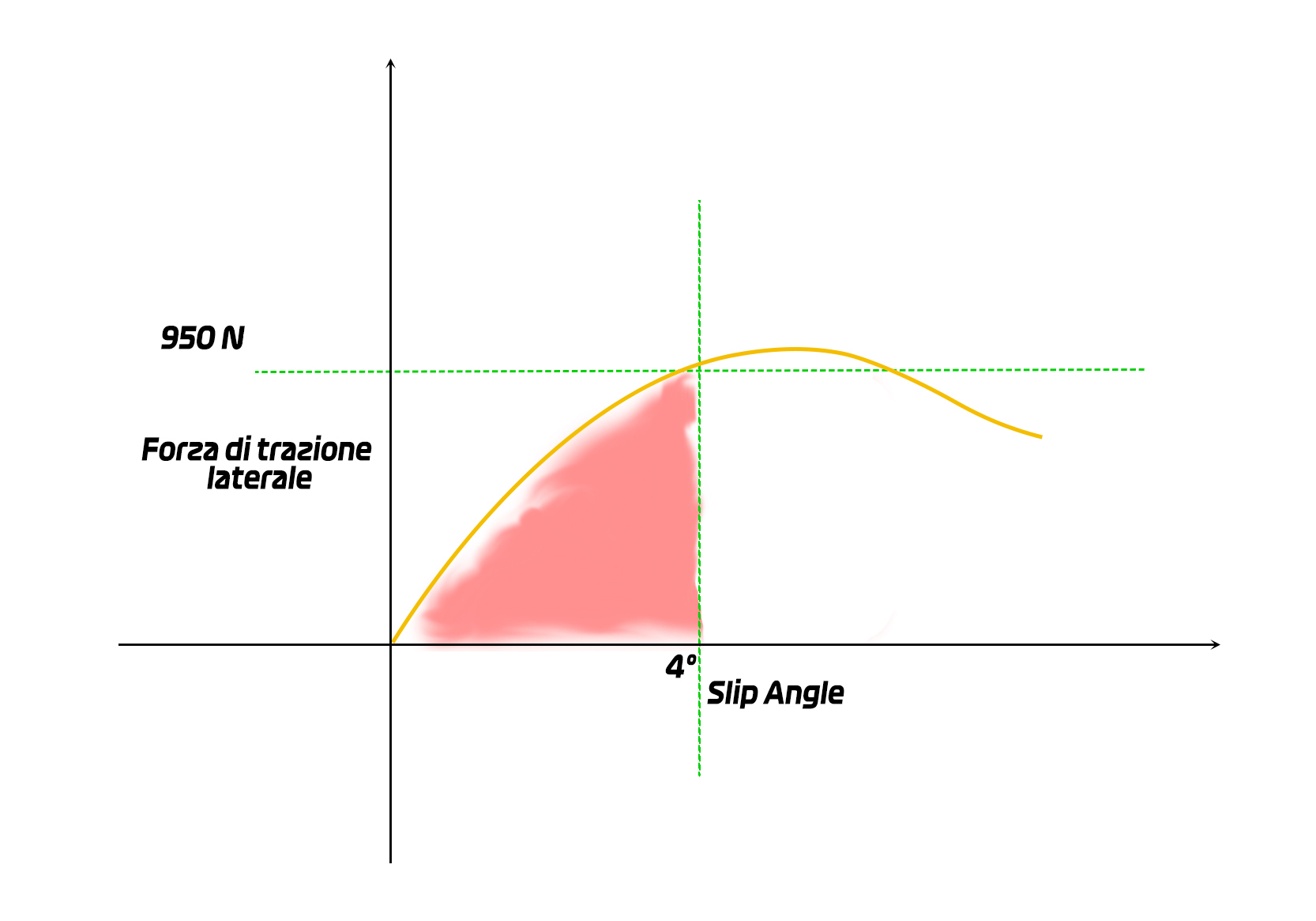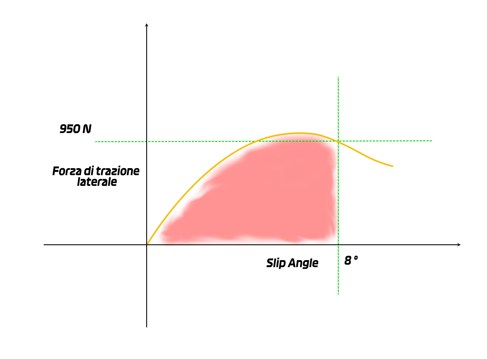 L'asse X è l’angolo di slittamento mentre l'asse Y è la forza di trazione laterale prodotta da questo angolo di slittamento.