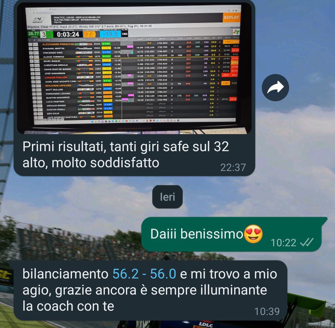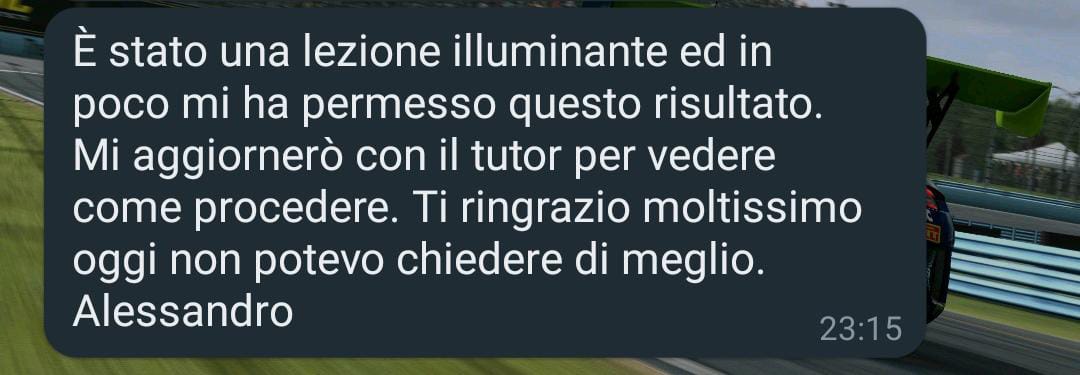 Se vuoi effettivamente migliorarti, di fare anche solo la coaching introduttiva per vedere cosa potrebbe succedere con gli insegnamenti del corso di Università del Simracing, ti consiglio vivamente questa scuderia.