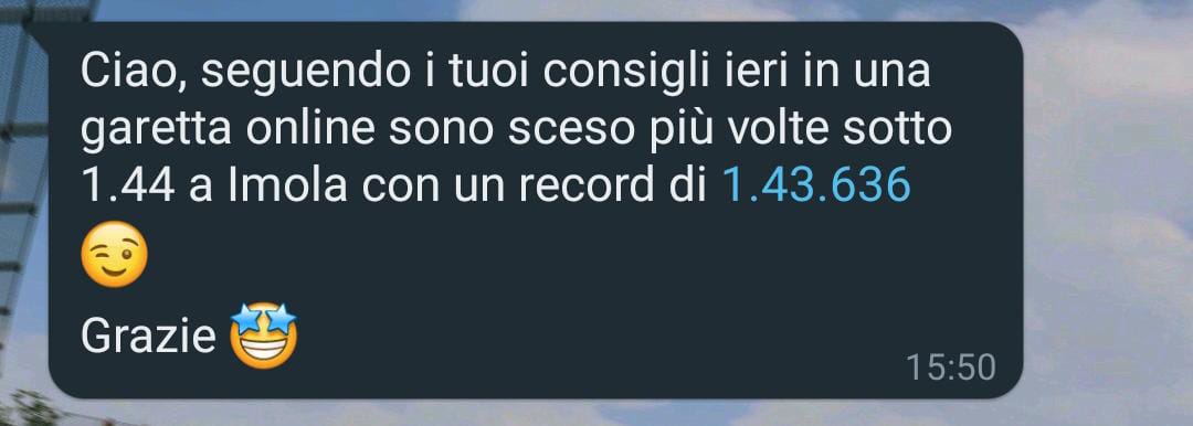 Consiglio a tutti UniSimRacing perché son persone veramente serie, sanno quello che fanno, ti possono aiutare con tante cose: assetti, frenata, accelerazione, impostazione delle curve...