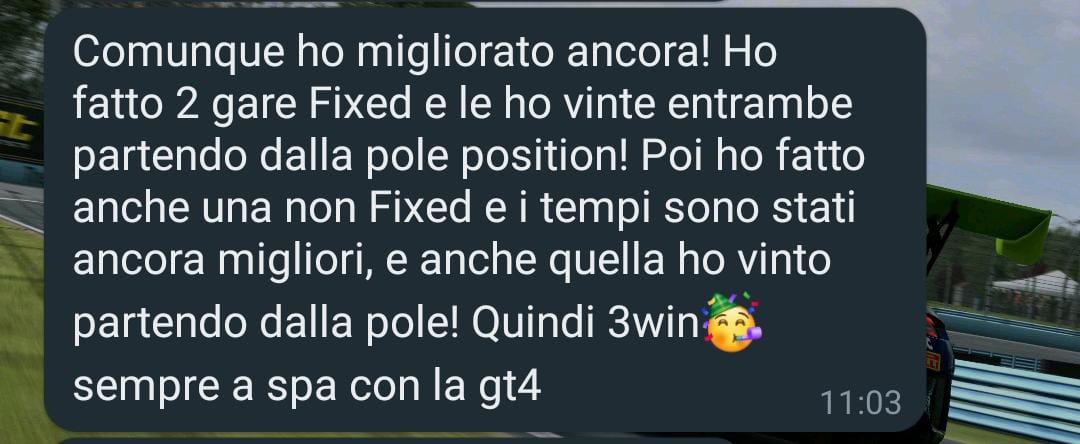 Se vuoi effettivamente migliorarti, di fare anche solo la coaching introduttiva per vedere cosa potrebbe succedere con gli insegnamenti del corso di Università del Simracing, ti consiglio vivamente questa scuderia.