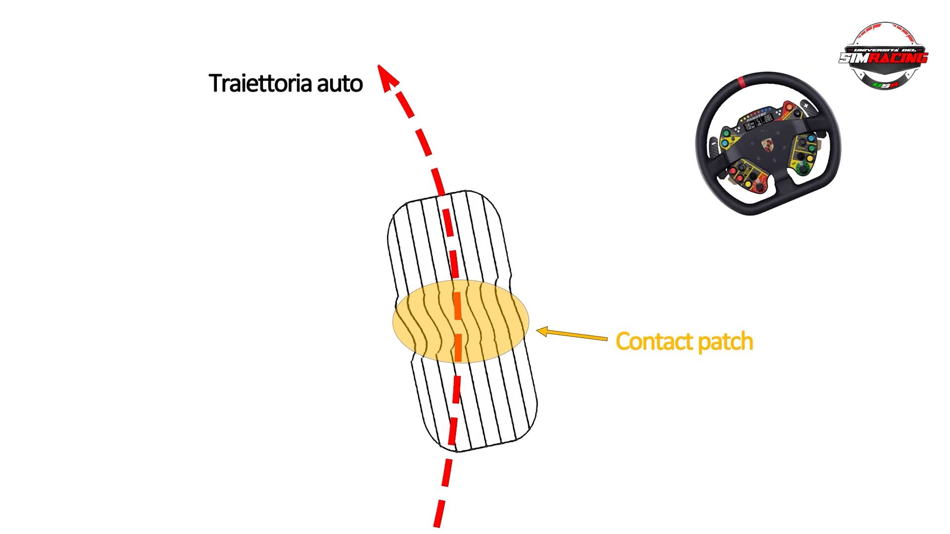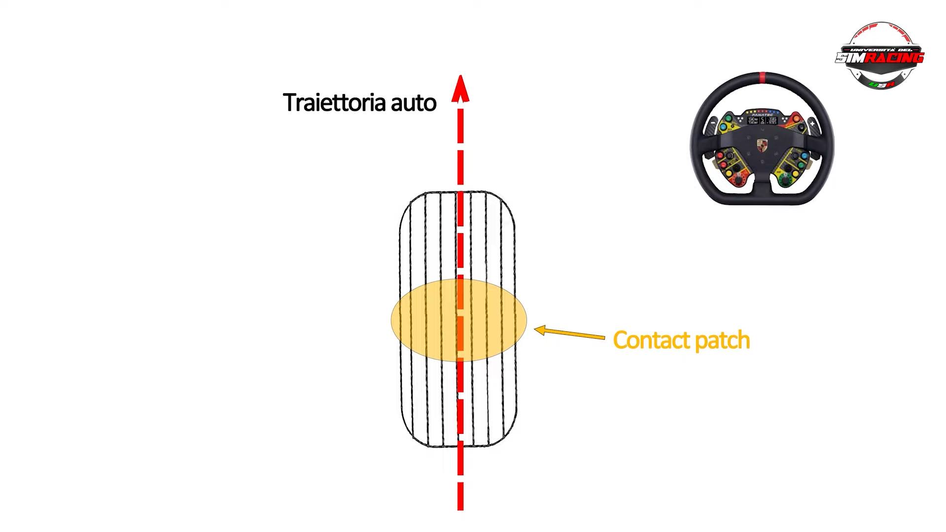 In un rettilineo, la contact patch non è sollecitata da forze esterne, visto che la direzione dello pneumatico è la stessa di quella dell'auto.