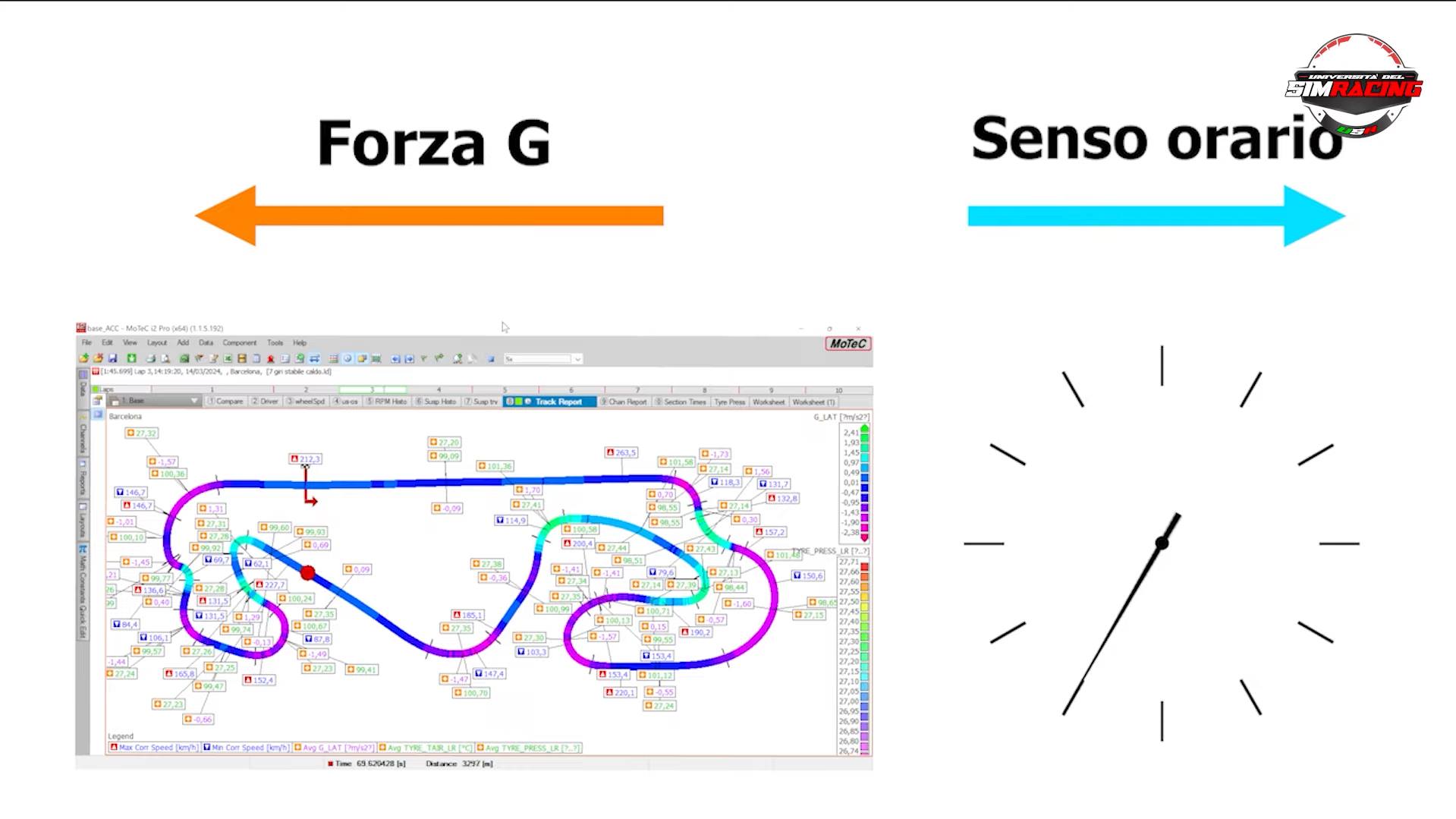 Abbiamo già parlato del fatto che l'asse di sinistra sarà quello più sollecitato, ma verificando i dati relativi ai G laterali è facile intuire come tanto nel primo settore con curva 1 e 3, quanto nel secondo (curva 4 e 9) e nel terzo (curve 12, 13 e 16)...
