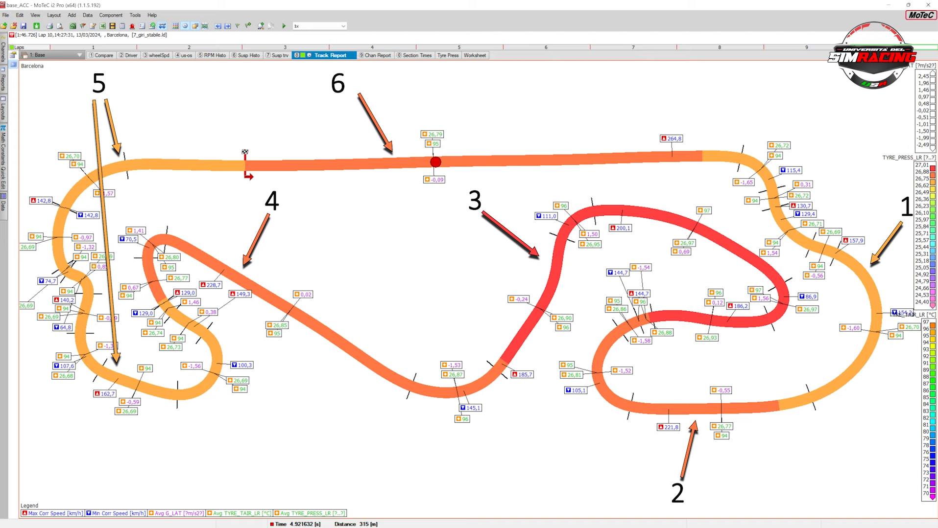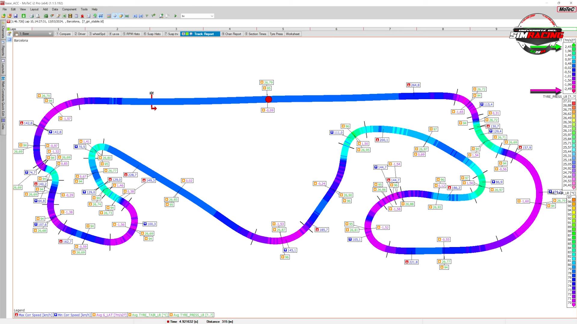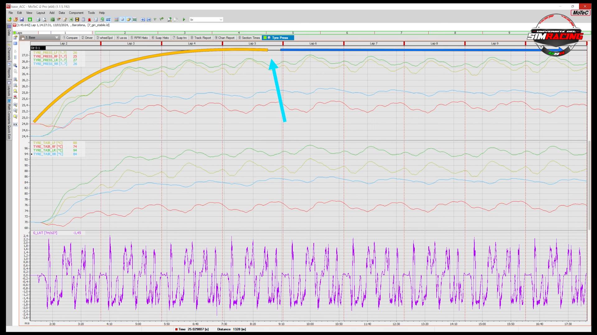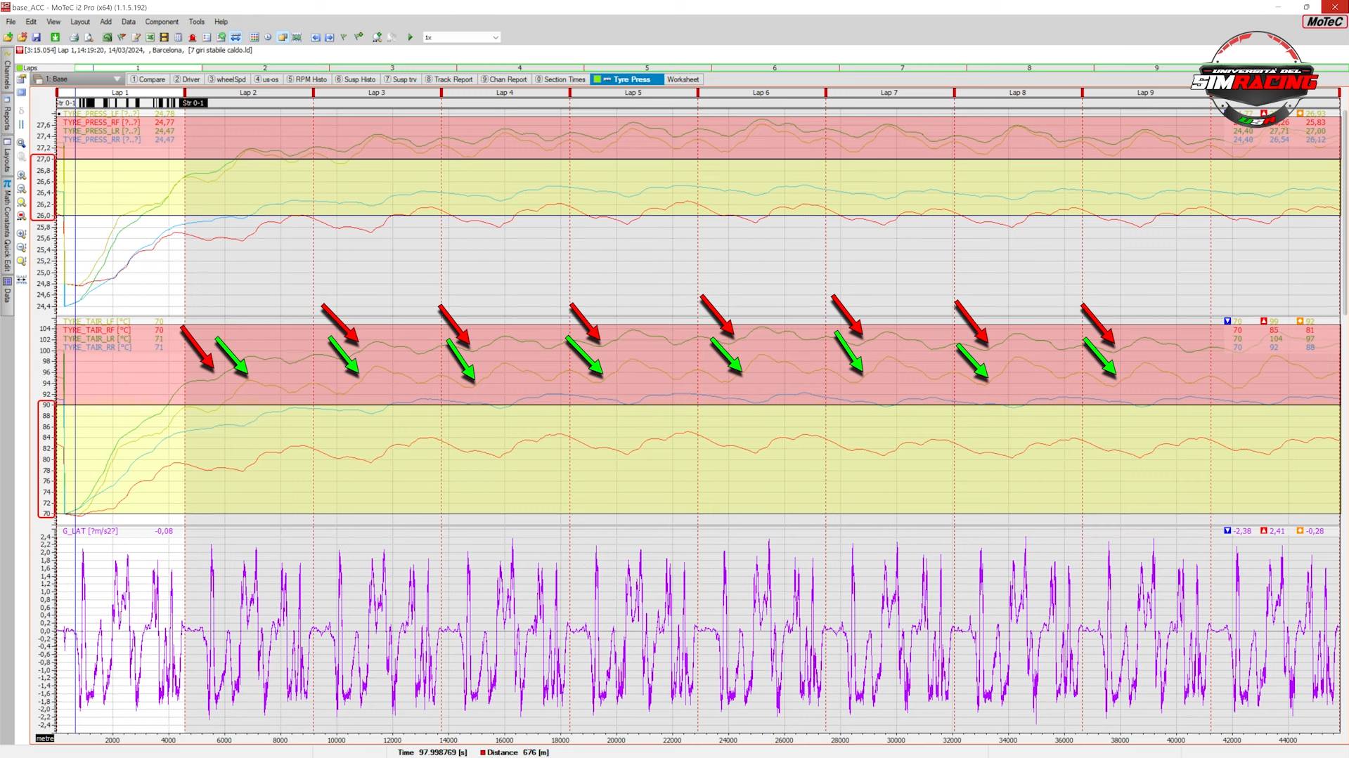 Per quel che riguarda le pressioni da utilizzare, analizzando più a fondo i dati telemetrici, possiamo ottenere altre importanti informazioni in merito al tracciato e alle modifiche che potremmo dover apportare al setup.