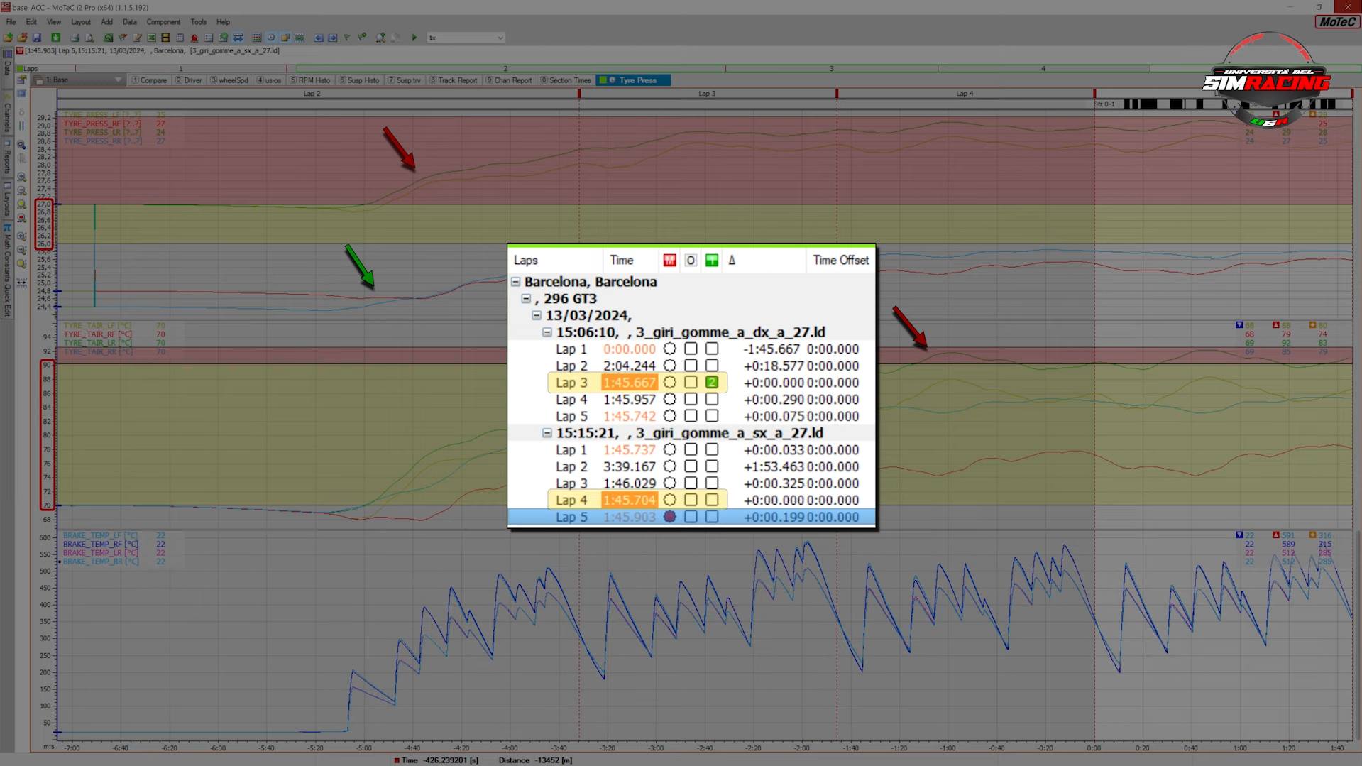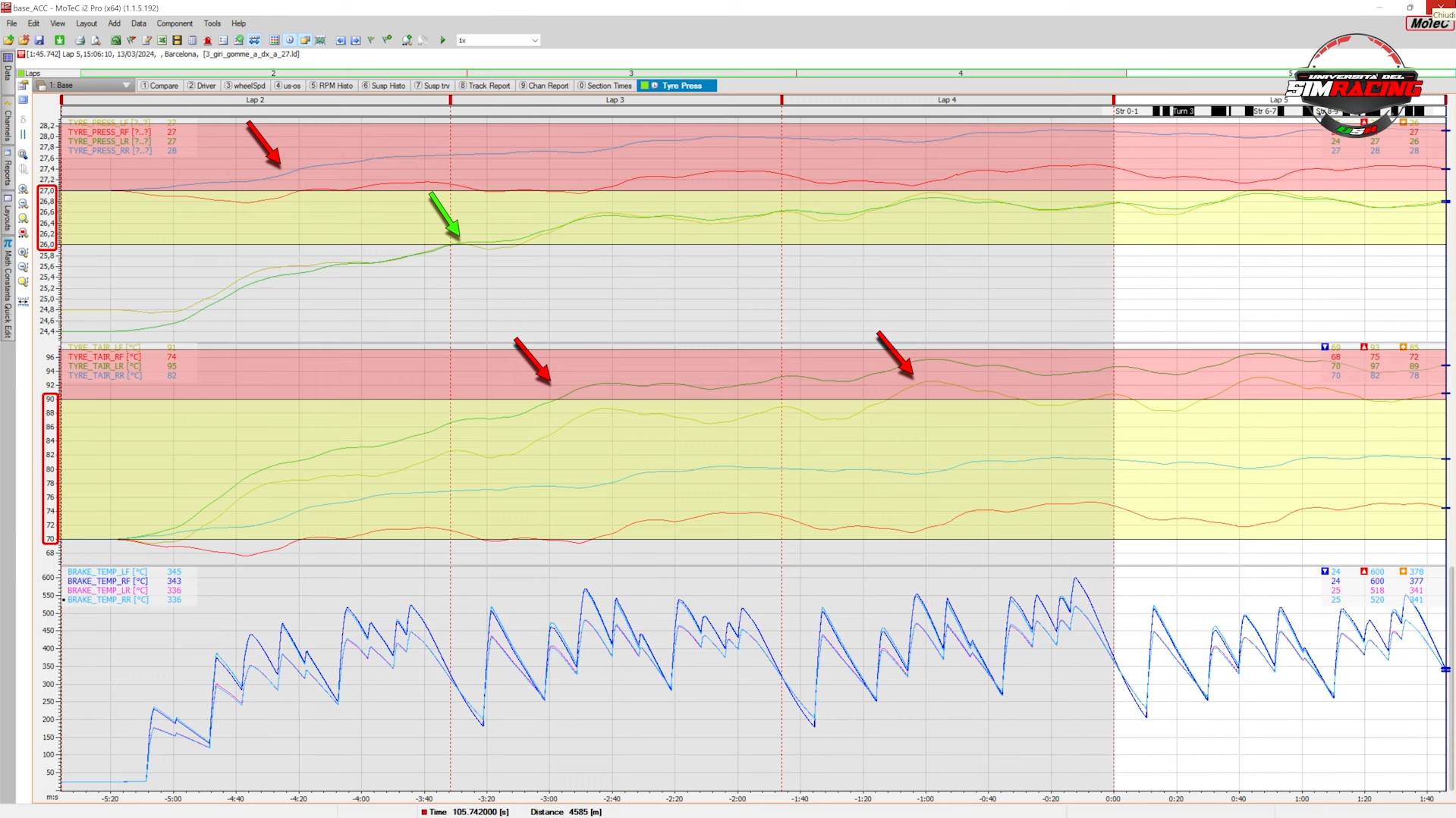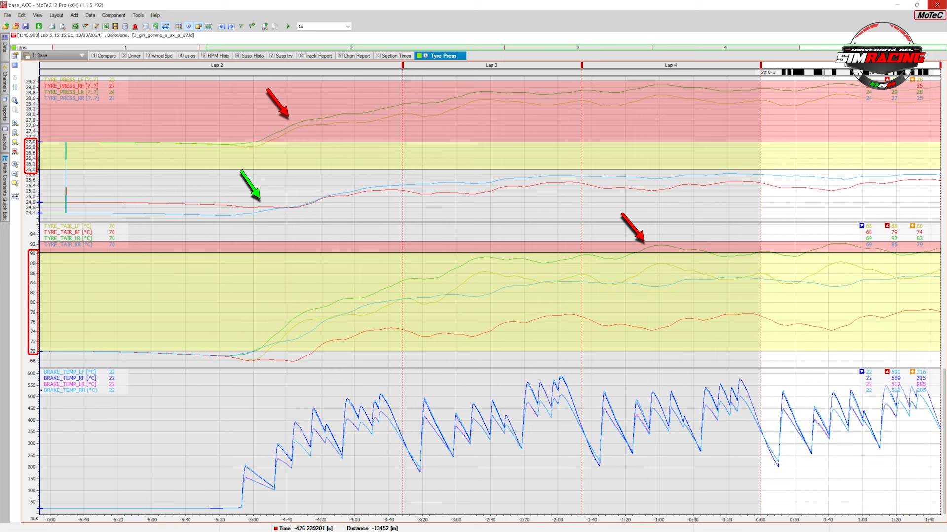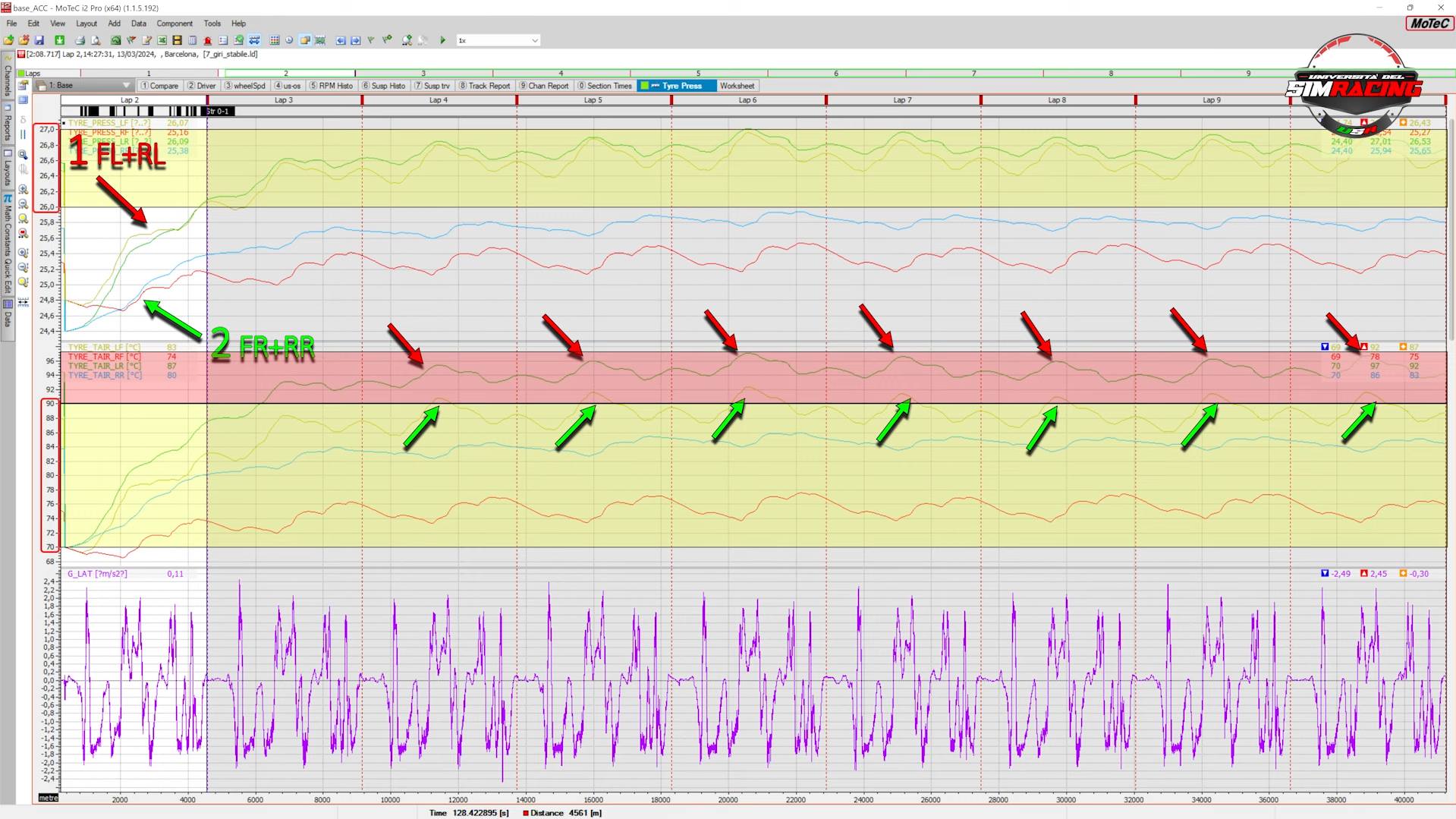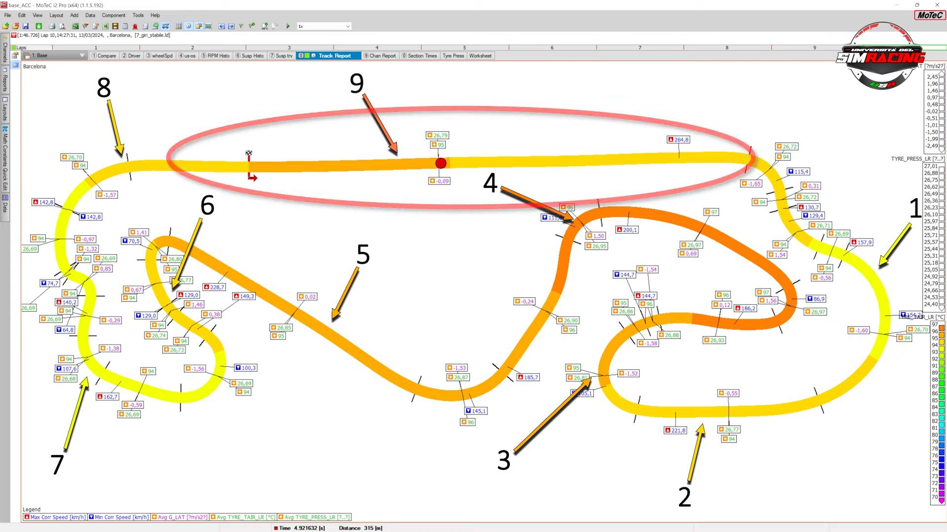 Per quel che riguarda le pressioni da utilizzare, analizzando più a fondo i dati telemetrici, possiamo ottenere altre importanti informazioni in merito al tracciato e alle modifiche che potremmo dover apportare al setup.