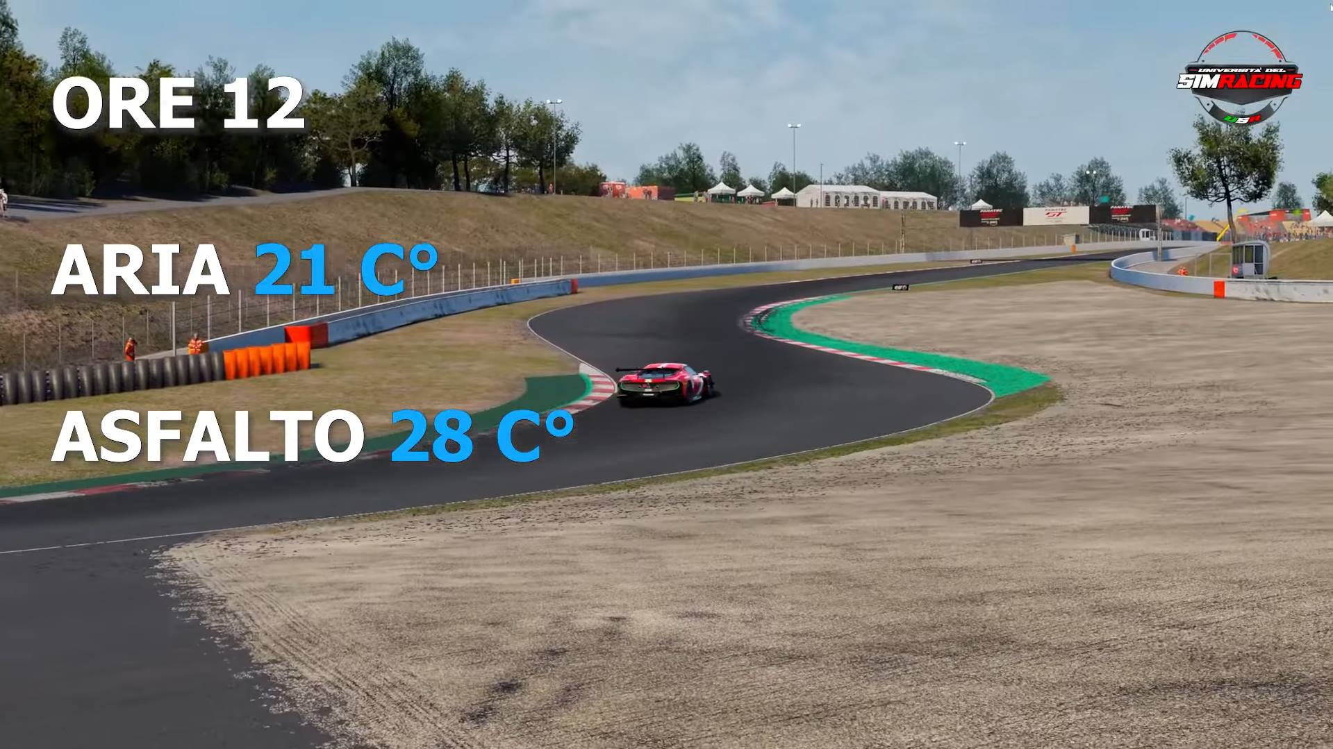 L'auto usata per la prova è la Ferrari 296 GT3, il simulatore di riferimento è ACC, utilizzando l'assetto stabile senza alcuna modifica, nemmeno per quel che riguarda le pressioni, con 120L di carburante.